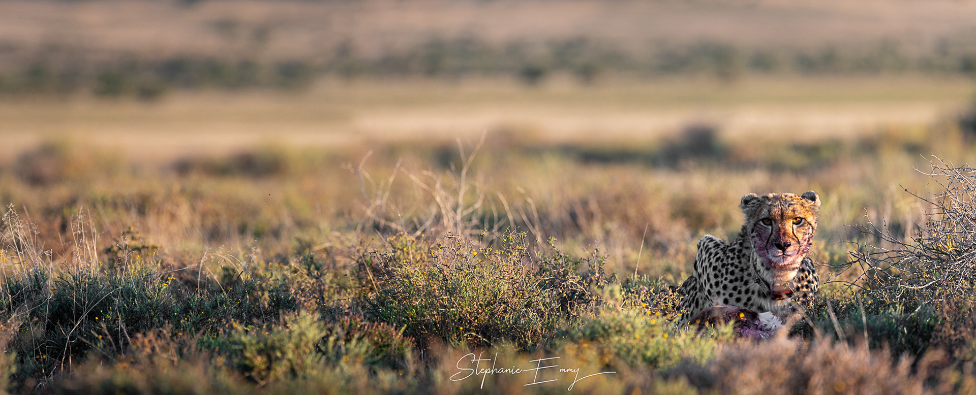 On one particularly memorable bush walk with our guide Roelof and tracker Rowan, Naledi appeared on an open plain with a blood stained face. One by one, her cubs followed in the long golden grass, settled down and groomed each other with the same gentleness we had witnessed when they were a mere day old. She had successfully raised two sets of cubs to adulthood, a beautiful testament to Samara Karoo’s conservation ethos and their contribution to wild cheetah conservation in South Africa.