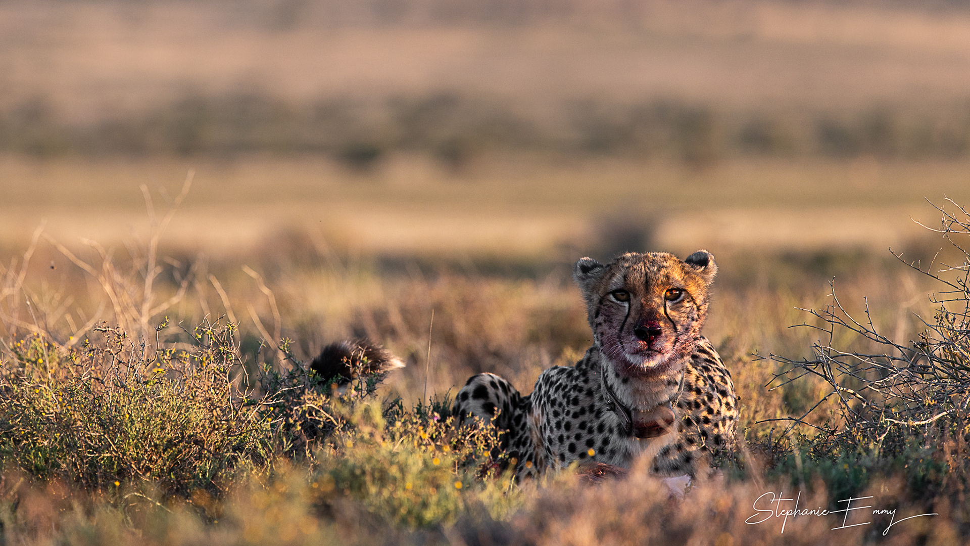 “What’s underneath her?” we whispered to Mzi, our guide, as we squinted in the setting sun behind a female cheetah, Naledi.